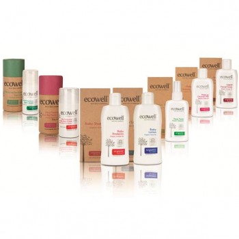 Ecowell ürünleri allerjen içermeyen doğal kokular, organik esansiyel yağlar, ve bitki özleri ve öz suları içerir.